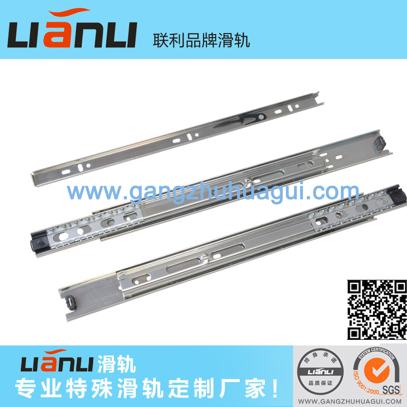 時(shí)間: 2014-08-11 17:11:32 來源: 東莞市聯(lián)利滑軌制造有限公司最近一周,我們客服人員接到很多關(guān)于三節(jié)滑軌承重問題的詢盤,今天,聯(lián)利小編來為大家解決這個(gè)問題。三節(jié)滑軌的承重要根據(jù)滑軌規(guī)格和厚度來衡量的,我司普通三節(jié)滑軌(不包括重型滑軌)的規(guī)格有36mm寬和45mm寬。下面給大家介紹這兩款三節(jié)滑軌的承重。