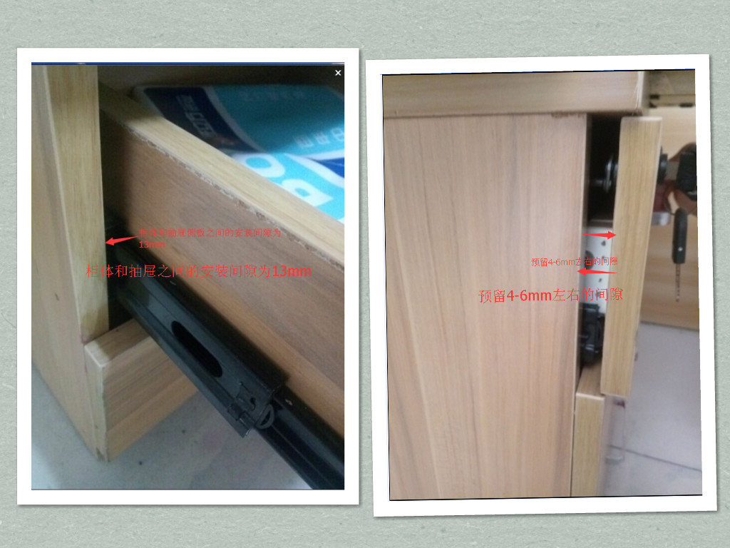 時(shí)間: 2016-05-27 15:41:39 來(lái)源: 東莞市聯(lián)利滑軌制造有限公司45寬三節(jié)反彈滑軌安裝的間隙與普通的三節(jié)滑軌安裝的間隙是一致的左右邊各13個(gè)毫米,但是抽面板和2個(gè)抽側(cè)板之接的間隙和隱藏式滑軌留的間隙也是一樣的要預(yù)留4—6個(gè)毫米(具體幾個(gè)毫米因產(chǎn)品而異,)當(dāng)左右的間隙少于13個(gè)毫米的時(shí)候,抽屜式彈不出來(lái)的,當(dāng)大于13個(gè)毫米的時(shí)候抽屜可以彈出來(lái),但是效果不理想,抽屜也很晃動(dòng)。