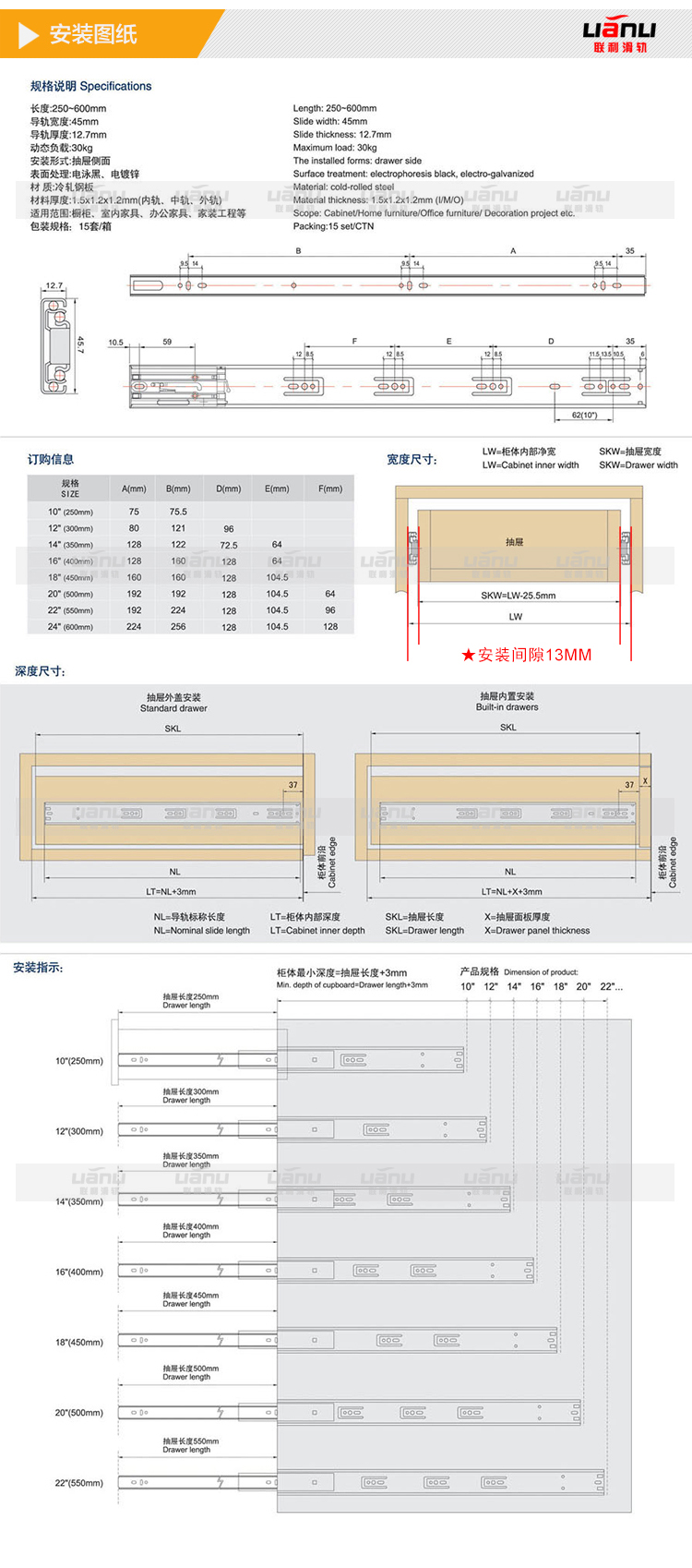在聯(lián)利小編最近接到的詢盤中,發(fā)現(xiàn)還是有少些客戶不知道滑軌的尺寸怎么選擇的。