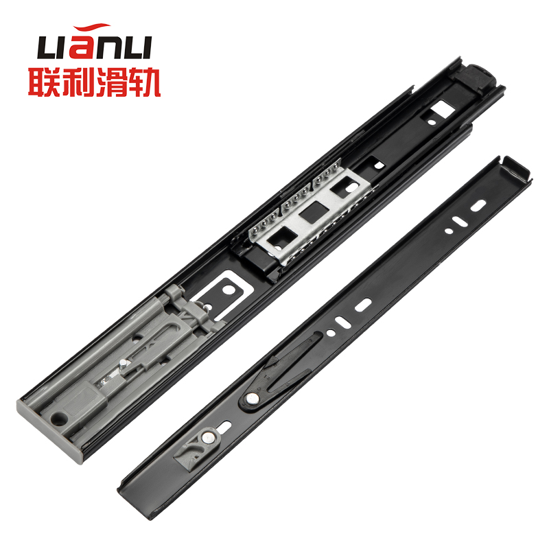 2、抽屜滑道分三個部分:活動軌(內(nèi)軌)、中軌、固定軌(外軌)。