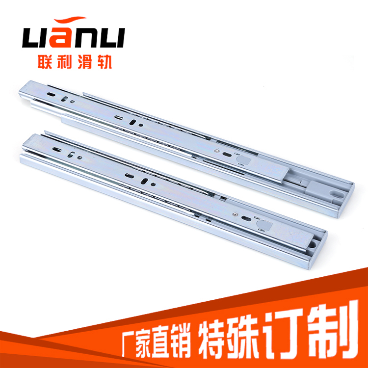 第一,首先我們要知道滑軌的厚度,根據(jù)滑軌的厚度來預(yù)留抽屜兩邊所需的間隙,在安裝前,我們需要把滑軌先分離開,鋼珠滑軌的分離方法是把滑軌拉出來,然后扳一下內(nèi)軌里的一個(gè)黑色塑料件,再抽出來就可以分離好,下面小編說的這一點(diǎn)請(qǐng)大家要注意一下,之前有個(gè)客戶在聯(lián)利這里下了1000付的訂單,后面客戶在安裝使用的時(shí)候說我們的滑軌出了一點(diǎn)問題,聯(lián)利馬上安排技術(shù)人員去了客戶的工廠里面了解情況,發(fā)現(xiàn)了一個(gè)問題,客戶在分離滑軌的時(shí)候像鋼珠滑軌一樣抽拉出來的,在分離反彈滑軌的時(shí)候,我們要先按一下,讓滑軌彈出來,我們?cè)龠M(jìn)行分離,要不然會(huì)影響滑軌的質(zhì)量。