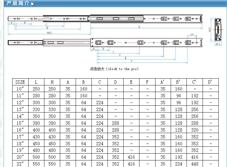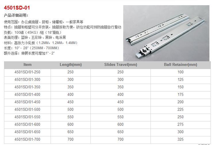 名稱: 45寬三節(jié)抽屜滑軌