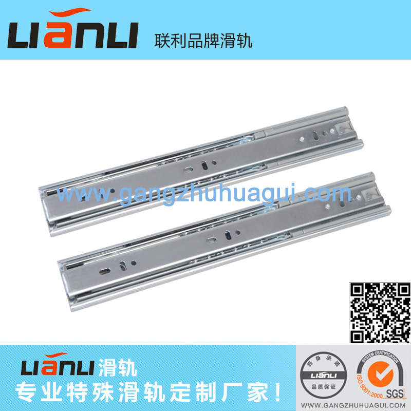 鋼珠阻尼滑軌特點:安裝方便,可以自動緩沖開關。 適用范圍:儲物柜、櫥柜、展示柜。